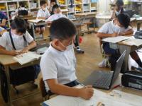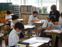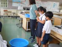 2022年7月11日 10時01分2年生は算数。いろいろな入れ物に水を入れ、かさを測りました。(単位と単位の関係も、体験を通して学んでくださいね。)