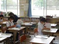 画像は他に、1年(生活)、3年(算数)、4年(国語)、5年(国語)、6年(書写)の様子です。(みんな真剣に活動しています。)