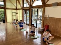 昼食の弁当タイムです。自然の家で初めての食事になります。