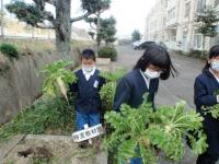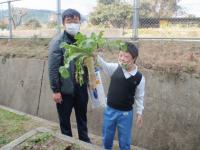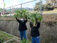 1/26 大根、とれたよ。 2022年1月26日 17時34分 眞田学級と久門学級のみんなで大根を収穫しました。長い間、お世話をしてきたかいがあり、立派な大根になりました。「おでんにしようかな。」「味噌汁に入れたいよ。」収穫の喜びを感じていました。 いいね