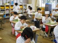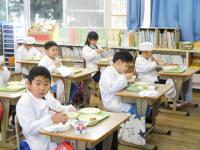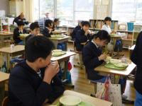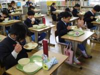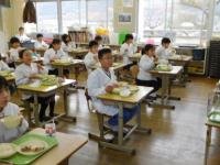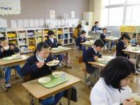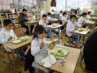 2022年1月24日 12時57分感染症対策のため、黙食で給食を食べる中、給食の時間を楽しくしようと、運営委員会のみなさんが、リモート放送で「がんばり中川っ子」を発表してくれました。