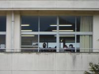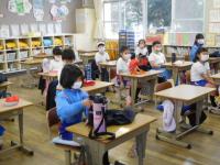 その後には、教室でリモート放送の画面を見たり、窓から見たりしながら、他の学年の児童を応援する姿が見られました。