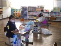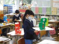 はさみやのりを上手に使って作品を仕上げる2年生。