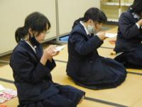 2021年12月16日 15時09分お作法を教わりながら和菓子をいただく茶道クラブ。