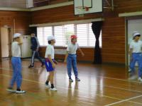 雨のため、体育館でバスケットボールをする屋外ゲームクラブ。