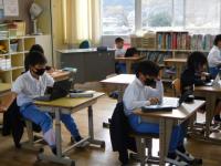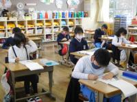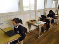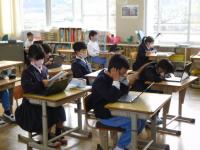 5年生は、えひめICT学習支援システムを活用した県学力診断プレテストをしています。紙ではなく、タブレットを使ってテストを受けます。1月の県学力診断調査に向けて、準備が進んでいます。
