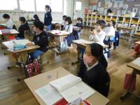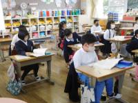 画像は、2年(国語)、3年(保健)、4年(算数)、5年(理科)、6年(算数)の様子です。