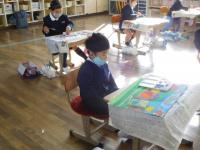 2021年11月26日 09時53分1年(図工)絵の具の量を調節しながら、読書感想画を仕上げています。