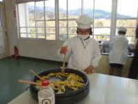 眞田学級、久門学級のみんなで大学芋を作りました。さつまいもは、先日1・2・5年生が学校の畑で掘った芋です。細く切って、根気強く炒めました。自分のできることを積極的にすることができました。食べてみると、「おいしーい!」の声。何度もおかわりをしている子もいました。お腹も心も大満足のクッキングになりました。