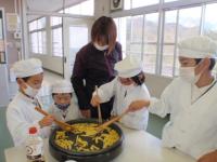 2021年11月24日 17時27分眞田学級、久門学級のみんなで大学芋を作りました。さつまいもは、先日1・2・5年生が学校の畑で掘った芋です。細く切って、根気強く炒めました。自分のできることを積極的にすることができました。食べてみると、「おいしーい!」の声。何度もおかわりをしている子もいました。お腹も心も大満足のクッキングになりました。