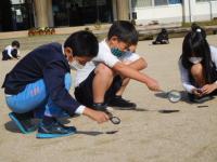 3年生は、虫めがねを使って、どのように日光を集めると良いかを実験しました。