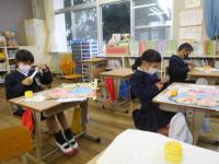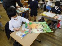 2年生(図工):はさみやのりを使ってポスターに文字を貼り付けました。(自分の思いが伝わるポスターになったかな。)