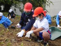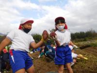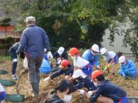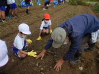 1・2・5年生が、校区の西川さんにお世話いただいたサツマイモを収穫しました。