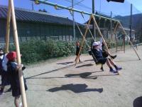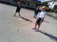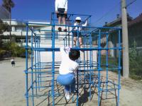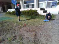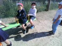 運動場では、子どもたちが元気よく遊んでいます。(天気もよくて、とても気持ちよさそうです。)たくさん走って暑くなったのか、中には半袖姿の児童も。これからは、汗をかいたら、きちんと拭いて、風邪をひかないように気を付けてね。