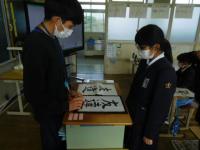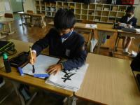 5年生(書写):はらいに気を付け、集中して「友達」という作品を仕上げました。