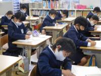 5年生(算数):集中して、確認テストに取り組んでいます。