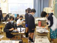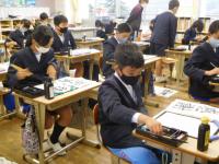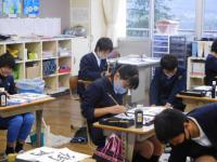 6年生(書写):お手本をじっくり見ながら毛筆をしています。