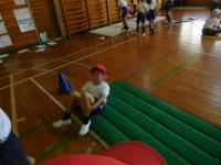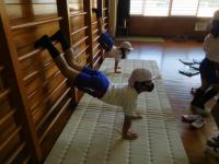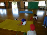 1・2年生(体育):安全に気を付けて、自分ができるマットでの運動をしました。