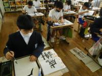 6年生(書写):折れやはらいに気を付けて「感謝」「街角」の作品を仕上げました。
