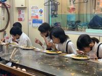 6年生修学旅行④ 2021年10月13日 15時06分 昼食は、お好み焼きを食べました。 目の前で焼いてもらい、大興奮の子どもたちでした。 片手で上手に卵を割っている姿に歓声があがりました。 味は最高! おなかいっぱいになりました。 いいね