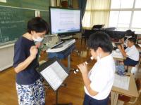 6年生(音楽):カノンの曲をリコーダーで演奏するときに、低い音をどのように演奏したらよいかを話し合い、練習しました。