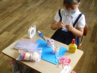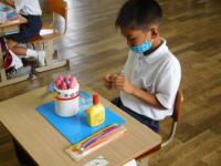 1年生(図工):紙粘土でごちそうを作りました。スイーツが多かったですね。