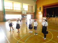 3・4年生:リレーのバトンパスの練習をしました。今日のめあては、「バトンを持ち換えずにバトンパスをしよう」です。