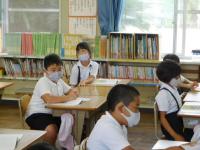 道徳の授業で、登場人物の気持ちを発表する2年生。