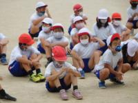 校庭を目一杯走り、体力をつける3・4年生。