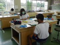 自然の家に持って行くナップザックを作る5年生。(楽しみですね。)