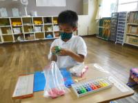 1年生:紙粘土に絵の具を混ぜて、自分が想像したごちそうを作りました。(図画工作)