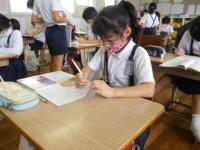 2021年9月17日 12時33分台風が接近し、午後(夕方?)から荒天が予想されますが、子どもたちは落ち着いて学習に取り組んでいます。