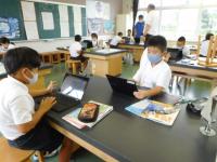3年生は理科:確認テストに向けてタブレットで復習をしていました。