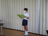 3名の児童代表が、1学期にがんばったことと、夏休みにがんばりたいことを発表しました。校長先生のお話は、「1学期をしっかり振り返り、チャレンジする夏休みにしよう」というものでした。