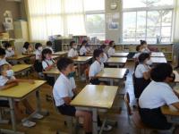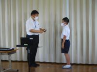 式の後、漢字・計算オリンピックや多読賞の表彰と、夏休みの生活についてのお話がありました。