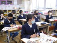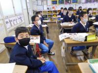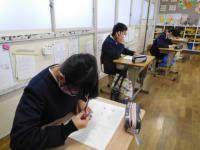 理科の5年生、生命の誕生の学習。6年生は家庭科のテスト、傍らには書写で仕上げた自筆の俳句も!