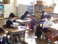 6年生は学級会活動で、席替えの話合い。次はどこになるかな、仲間の諸事情も加味しながら進行中!