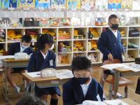 5年生は社会、自動車産業についての学習で、夢の車を発表し合う姿。夢がやがて現実になりそう!?