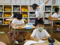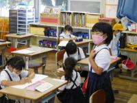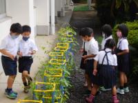 月曜以来ですが、いつもの朝の諸準備をする1・2年生。アサガオの観察に目を輝かせる姿も!