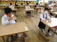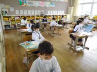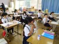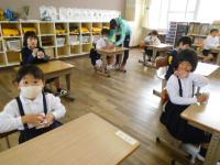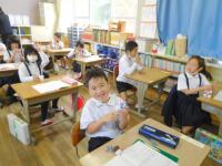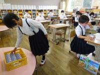 休み時間後は、手洗い&うがい。給食業者から提供いただいた牛乳を飲んで、3時間目へ。