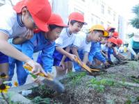 1年生が、学級園の手入れ。何を植えるかな?4年生は、福祉学習。車いす体験の感想は?
